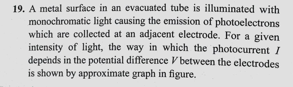 A metal surface in an evacuated tube is illuminated with monochromatic light causing the emission of photoelectrons which are collected at an adjacent electrode. For a given intensity A metal surface in an evacuated tube is illuminated with monochromatic light causing the emission of photoelectrons which are collected at an adjacent electrode. For a given intensity October 12, 2020 Category: Uncategorised (JEE Advanced Physics by BM Sharma + GMP Solutions) , Facebook Messenger WhatsApp Share this:TwitterFacebook Related