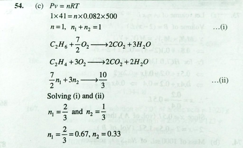 A mixture of ethane and ethene occupies 41 L at atm and 500 K. The mixture reacts compeletly with 10/3 mole of oxygen to produce CO2 and water. The mole fraction of ethane and ethene in the mixture are ( R = 0.082 1L atm K/mol −1 respectively The unity of molarity is (a) Mole per litre (b) mole per kg (c) per mole per litre (d) mole litre December 11, 2020 Category: Uncategorised (JEE Advanced Physics by BM Sharma + GMP Solutions) , Facebook Messenger WhatsApp Share this:TwitterFacebook Related