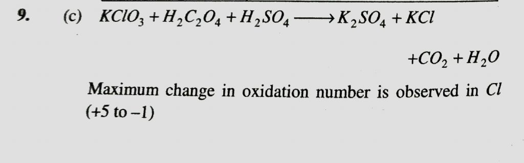 A mixture of potassium chlorate , oxalic acid and sulpheric acid is heated. During the reaction which element undergoes maximum change in the oxidation number A mixture of potassium chlorate oxalic acid and sulpheric acid is heated. During the reaction which element undergoes maximum change in the oxidation number November 23, 2020 Category: Uncategorised (JEE Advanced Physics by BM Sharma + GMP Solutions) , Facebook Messenger WhatsApp Share this:TwitterFacebook Related
