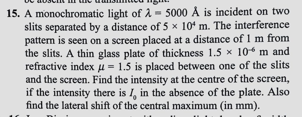 A monochromatic light of lemda = 5000 A is incident on two slits separated by a distance of 5 * 10^4 m. The interference pattern is seen on a screen placed at a distance of 1 m from the slits. A monochromatic light of lemda = 5000 A is incident on two slits separated by a distance of 5 * 10^4 m. The interference pattern is seen on a screen placed at a distance of 1 m from the slits. October 11, 2020 Category: Uncategorised (JEE Advanced Physics by BM Sharma + GMP Solutions) , Facebook Messenger WhatsApp Share this:TwitterFacebook Related