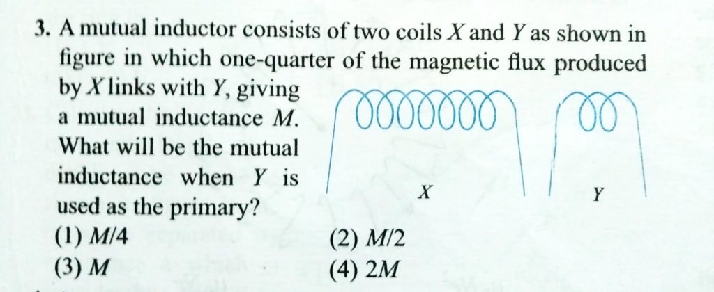 A mutual inductor consists of two coils X and Y as shown in Fig. in which one-quarter of the magnetic flux produced by X links with Y, giving a mutual inductance M. What will be the mutual inductance when Y is used as the primary? A mutual inductor consists of two coils X and Y as shown in Fig. in which one-quarter of the magnetic flux produced by X links with Y giving a mutual inductance M. What will be the mutual inductance when Y is used as the primary? October 22, 2020 Category: Uncategorised (JEE Advanced Physics by BM Sharma + GMP Solutions) , Facebook Messenger WhatsApp Share this:TwitterFacebook Related