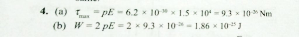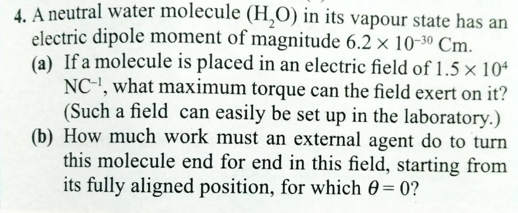 A neutral water molecule (H2O) in its vapour state has an electric dipole moment of magnitudes 6.4×10^−30 C/m. How far apart are the molecules centres of positive and negative charge A neutral water molecule (H2O) in its vapour state has an electric dipole moment of magnitudes 6.4×10^−30 C/m. How far apart are the molecules centres of positive and negative charge November 5, 2020 Category: Uncategorised (JEE Advanced Physics by BM Sharma + GMP Solutions) , Facebook Messenger WhatsApp Share this:TwitterFacebook Related