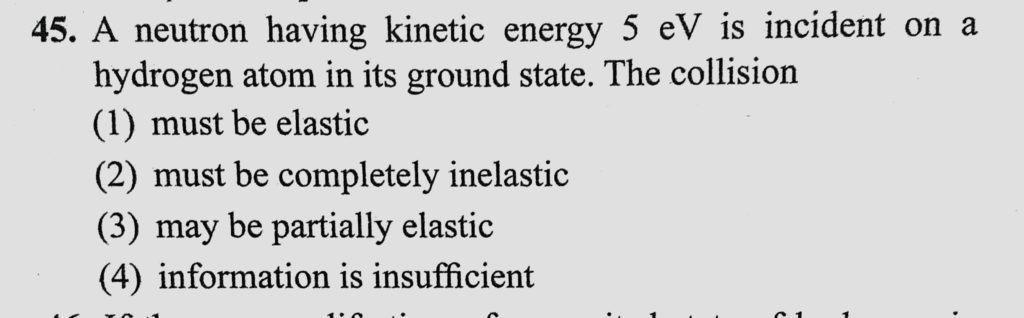 A neutron having kinetic energy 5 eV is incident on a hydrogen atom in its ground state. The collision A neutron having kinetic energy 5 eV is incident on a hydrogen atom in its ground state. The collision October 15, 2020 Category: Uncategorised (JEE Advanced Physics by BM Sharma + GMP Solutions) , Facebook Messenger WhatsApp Share this:TwitterFacebook Related