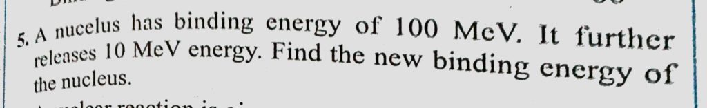 A nucleus has binding energy of 100 MeV. It further releases 10 MeV energy. Find the new binding energy of the nucleus. A nucleus has binding energy of 100 MeV. It further releases 10 MeV energy. Find the new binding energy of the nucleus. October 17, 2020 Category: Uncategorised (JEE Advanced Physics by BM Sharma + GMP Solutions) , Facebook Messenger WhatsApp Share this:TwitterFacebook Related