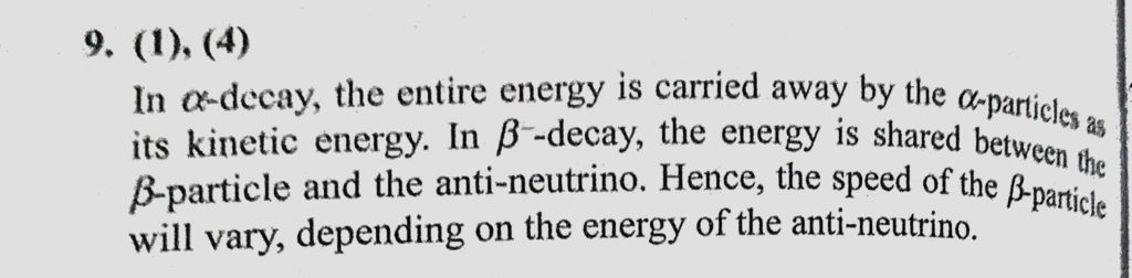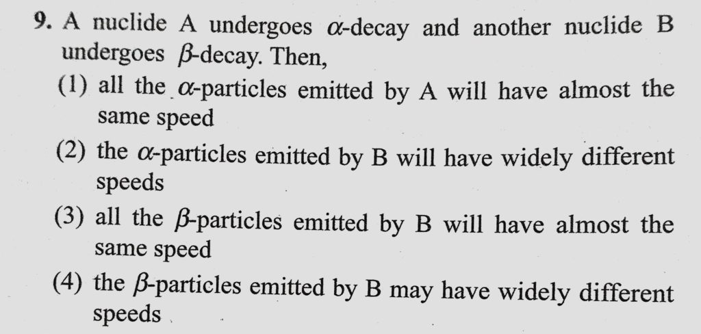 A nuclide A undergoes alpha decay and another nuclide B undergoes beta decay. They, (1) all the alpha particles emitted by A will have almost the same speed (2) the alpha particles (1) all the alpha particles emitted by A will have almost the same speed (2) the alpha particles A nuclide A undergoes alpha decay and another nuclide B undergoes beta decay. They October 18, 2020 Category: Uncategorised (JEE Advanced Physics by BM Sharma + GMP Solutions) , Facebook Messenger WhatsApp Share this:TwitterFacebook Related