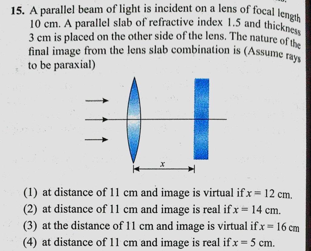 A parallel beam of light is incident on a lens of focal length 10 cm. A parallel slab of refractive index 1.5 and thickness 3 cm is placed on the other side of the lens. The nature of the A parallel beam of light is incident on a lens of focal length 10 cm. A parallel slab of refractive index 1.5 and thickness 3 cm is placed on the other side of the lens. The nature of the October 9, 2020 Category: Uncategorised (JEE Advanced Physics by BM Sharma + GMP Solutions) , Facebook Messenger WhatsApp Share this:TwitterFacebook Related