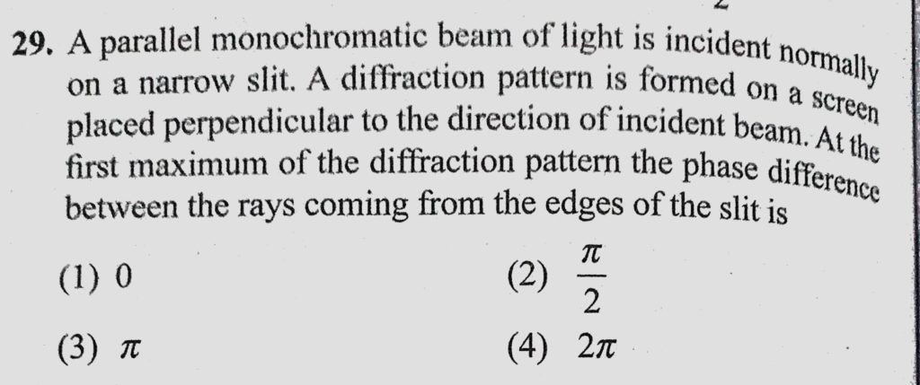 A parallel monochromatic beam of light is incident normally on a narrow slit. A diffraction pattern is formed on a screen placed perpendicular to the direction of incident beam. A parallel monochromatic beam of light is incident normally on a narrow slit. A diffraction pattern is formed on a screen placed perpendicular to the direction of incident beam. October 12, 2020 Category: Uncategorised (JEE Advanced Physics by BM Sharma + GMP Solutions) , Facebook Messenger WhatsApp Share this:TwitterFacebook Related