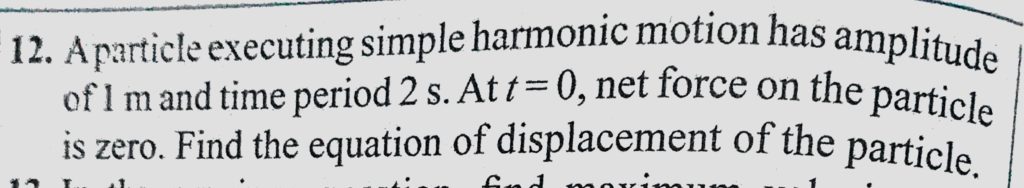 A particle executing simple harmonic motion has amplitude of 1 m and time period 2 s. At t = 0, net force on the particle is zero. Find the equation of displacement of the particle. A particle executing simple harmonic motion has amplitude of 1 m and time period 2 s. At t = 0 net force on the particle is zero. Find the equation of displacement of the particle. October 30, 2020 Category: Uncategorised (JEE Advanced Physics by BM Sharma + GMP Solutions) , Facebook Messenger WhatsApp Share this:TwitterFacebook Related
