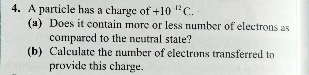 A particle has a charge of +10 ^-12 (a) Does it contain more or less number of electrons as compared to the neutral state ? (b) Calculate the number of electrons transferred to provide this charge . A particle has a charge of +10 ^-12 (a) Does it contain more or less number of electrons as compared to the neutral state ? (b) Calculate the number of electrons transferred to provide this charge . October 28, 2020 Category: Uncategorised (JEE Advanced Physics by BM Sharma + GMP Solutions) , Facebook Messenger WhatsApp Share this:TwitterFacebook Related