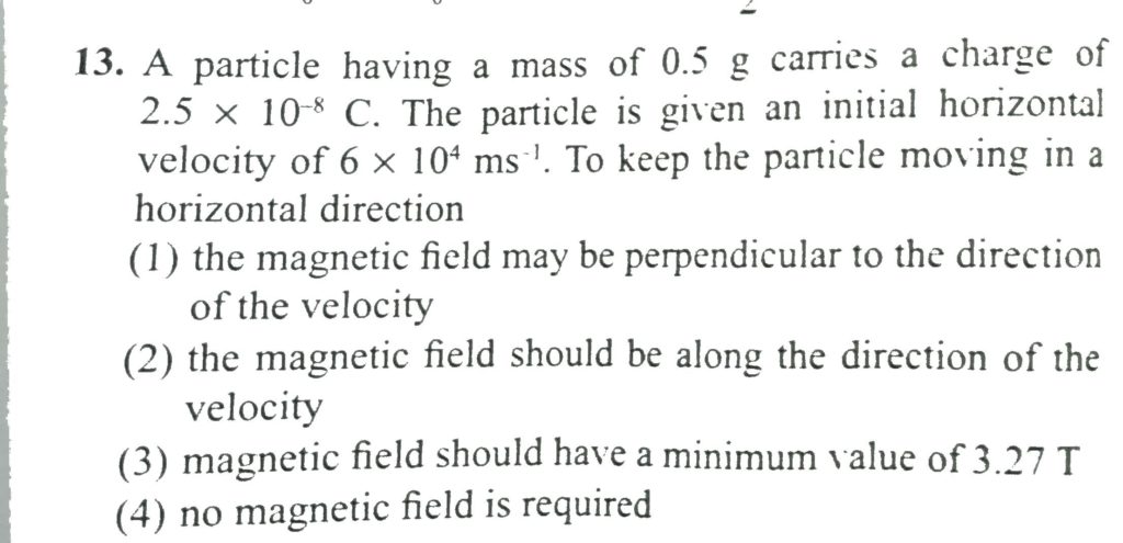 A particle having a mass of 0.5 g carries a charge of 2.5 x 10^-8 C. The particle is given an initial horizontal velocity of 6 x 10^4 m/s. To keep the particle moving in a horizontal direction A particle having a mass of 0.5 g carries a charge of 2.5 x 10^-8 C. The particle is given an initial horizontal velocity of 6 x 10^4 m/s. To keep the particle moving in a horizontal direction October 14, 2020 Category: Uncategorised (JEE Advanced Physics by BM Sharma + GMP Solutions) , Facebook Messenger WhatsApp Share this:TwitterFacebook Related