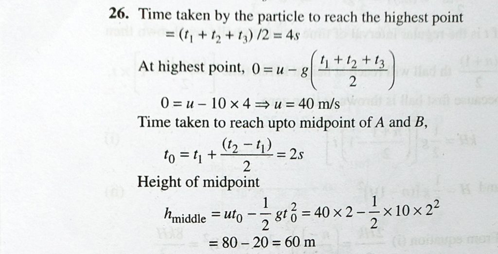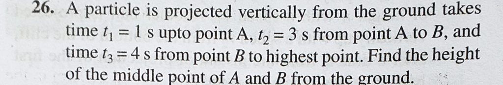 A particle is projected vertically form the ground takes time t1 = 1 s upto point A, t2 = 3 s from point A to B, and time t3 = 4 s from point B to highest point. Find the height of the middle point A particle is projected vertically form the ground takes time t1 = 1 s upto point A and time t3 = 4 s from point B to highest point. Find the height of the middle point t2 = 3 s from point A to B September 18, 2020 Category: Uncategorised (JEE Advanced Physics by BM Sharma + GMP Solutions) , Facebook Messenger WhatsApp Share this:TwitterFacebook Related