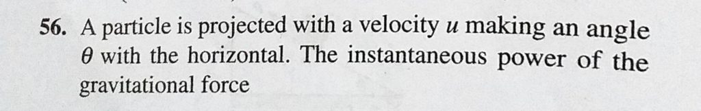 A particle is projected with a velocity u making an angle theta with the horizontal. The instantaneous power of the gravitational force A particle is projected with a velocity u making an angle theta with the horizontal. The instantaneous power of the gravitational force October 4, 2020 Category: Uncategorised (JEE Advanced Physics by BM Sharma + GMP Solutions) , Facebook Messenger WhatsApp Share this:TwitterFacebook Related