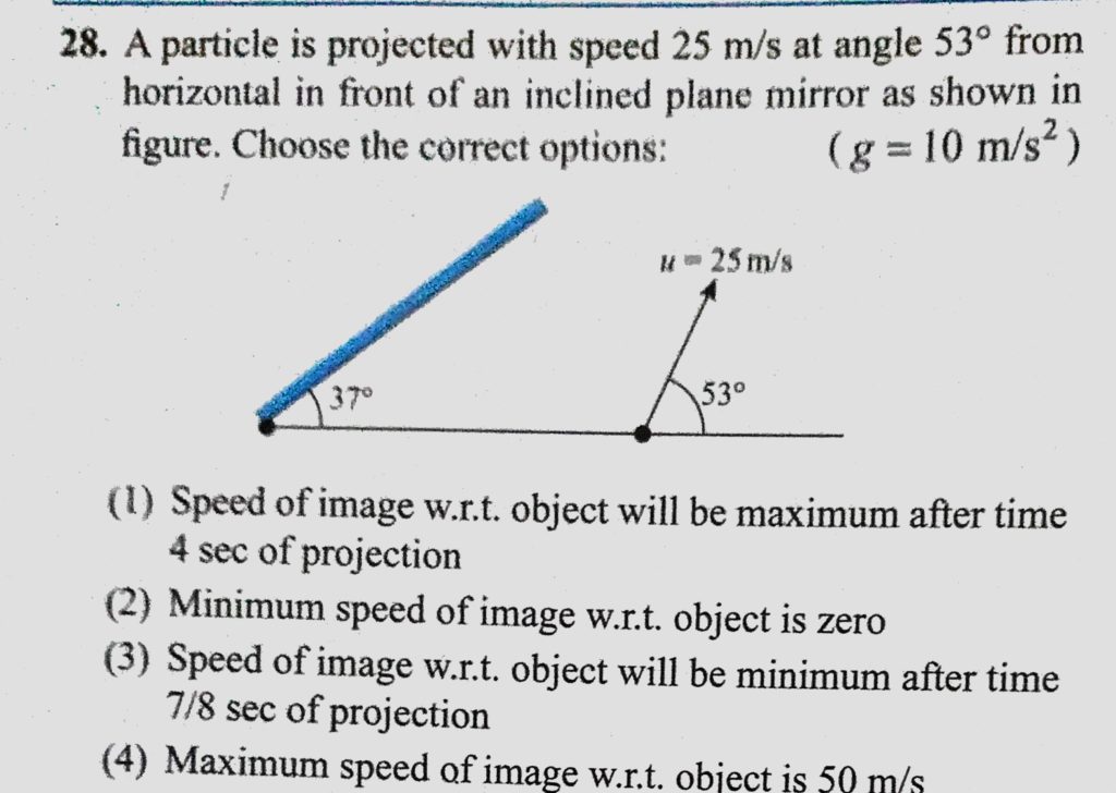 A particle is projected with speed 25 m/s at angle 53 from horizontal in front of an inclined plane mirror as shown in figure. Choose the correct options: A particle is projected with speed 25 m/s at angle 53 from horizontal in front of an inclined plane mirror as shown in figure. Choose the correct options: October 7, 2020 Category: Uncategorised (JEE Advanced Physics by BM Sharma + GMP Solutions) , Facebook Messenger WhatsApp Share this:TwitterFacebook Related