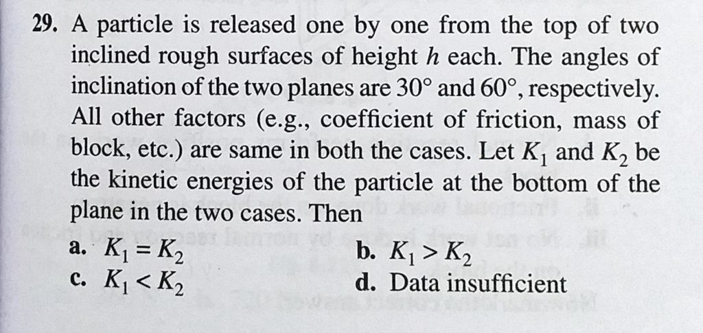 A particle is released one by one from the top of two inclined rough surfaces of height h each. The angles of inclination of the two planes are 30 and 60, respectively. All other factors A particle is released one by one from the top of two inclined rough surfaces of height h each. The angles of inclination of the two planes are 30 and 60 respectively. All other factors October 3, 2020 Category: Uncategorised (JEE Advanced Physics by BM Sharma + GMP Solutions) , Facebook Messenger WhatsApp Share this:TwitterFacebook Related