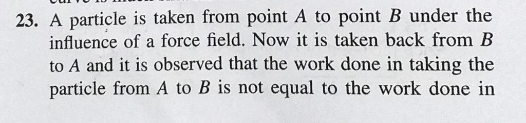 A particle is taken from point A to point B under the influence of a force field. Now it is taken back from B to A and it is observed that the work done in taking the particle from A to B A particle is taken from point A to point B under the influence of a force field. Now it is taken back from B to A and it is observed that the work done in taking the particle from A to B October 4, 2020 Category: Uncategorised (JEE Advanced Physics by BM Sharma + GMP Solutions) , Facebook Messenger WhatsApp Share this:TwitterFacebook Related
