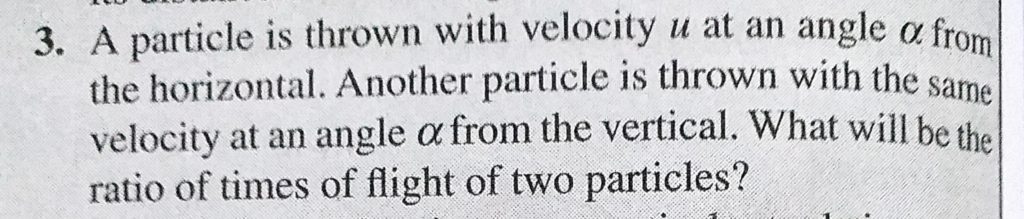 A particle is thrown with velocity u at an angle alpha from the horizontal. Another particle is thrown with the same velocity at an angle alpha from the vertical. What will be the ratio A particle is thrown with velocity u at an angle alpha from the horizontal. Another particle is thrown with the same velocity at an angle alpha from the vertical. What will be the ratio September 19, 2020 Category: Uncategorised (JEE Advanced Physics by BM Sharma + GMP Solutions) , Facebook Messenger WhatsApp Share this:TwitterFacebook Related