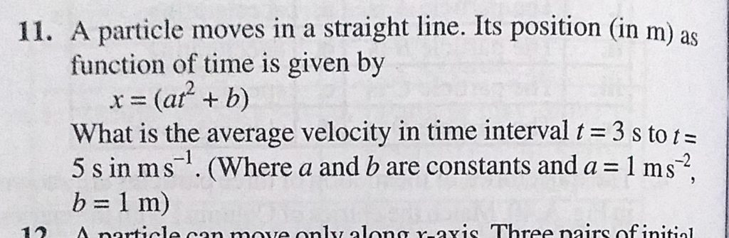 A particle moves in a straight line. Its position ( in m) as function of time is given by x = ( at^2 + b) What is the average velocity in time interval t = 3s to t = 5 s in m/s. A particle moves in a straight line. Its position ( in m) as function of time is given by x = ( at^2 + b) What is the average velocity in time interval t = 3s to t = 5 s in m/s. September 25, 2020 Category: Uncategorised (JEE Advanced Physics by BM Sharma + GMP Solutions) , Facebook Messenger WhatsApp Share this:TwitterFacebook Related