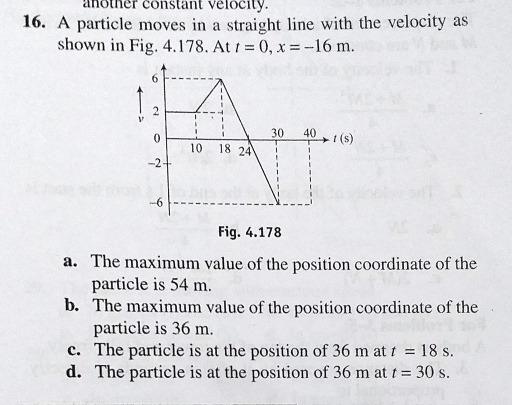 A particle moves in a straight line with the velocity as shown in Fig. 4.178 . At t = 0, x = -16 m. a. The maximum value of the position coordinate of the particle is 54 m. b. The maximum value A particle moves in a straight line with the velocity as shown in Fig. 4.178 . At t = 0 x = -16 m. a. The maximum value of the position coordinate of the particle is 54 m. b. The maximum value September 19, 2020 Category: Uncategorised (JEE Advanced Physics by BM Sharma + GMP Solutions) , Facebook Messenger WhatsApp Share this:TwitterFacebook Related