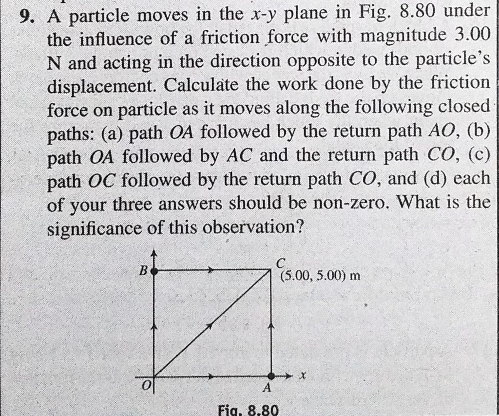 A particle moves in the x-y plane in Fig. 8.80 under the influence of a friction force with magnitude 3.00 N and acting in the direction opposite to the particle’s displacement. Calculate the work done by the friction Figure 8.79 shows three paths connecting points a and b. A single force F does the indicated work on a particle moving along each path in the indicated direction. On the basis of this information. October 2, 2020 Category: Uncategorised (JEE Advanced Physics by BM Sharma + GMP Solutions) , Facebook Messenger WhatsApp Share this:TwitterFacebook Related