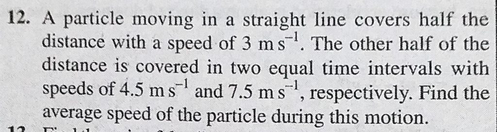 A particle moving in a straight line covers half the distance with a speed of 3 m/s. The other half of the distance is covered in two equal time intervals with speeds of 4.5 m/s and 7.5 m/s A particle moving in a straight line covers half the distance with a speed of 3 m/s. The other half of the distance is covered in two equal time intervals with speeds of 4.5 m/s and 7.5 m/s September 18, 2020 Category: Uncategorised (JEE Advanced Physics by BM Sharma + GMP Solutions) , Facebook Messenger WhatsApp Share this:TwitterFacebook Related
