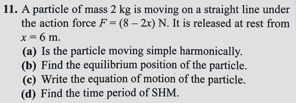 A particle of mass 2 kg is moving on a straight line under the action force F = (8 – 2x) N. It is released at rest from x = 6 m. A particle of mass 2 kg is moving on a straight line under the action force F = (8 - 2x) N. It is released at rest from x = 6 m. October 30, 2020 Category: Uncategorised (JEE Advanced Physics by BM Sharma + GMP Solutions) , Facebook Messenger WhatsApp Share this:TwitterFacebook Related