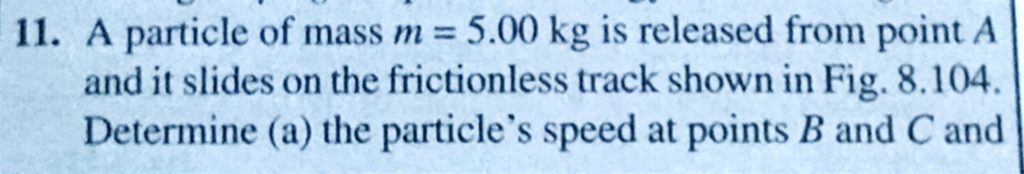 A particle of mass m = 5.00 kg is released from point A and it slides on the frictionless track shown in Fig. 8.104. Determine (a) the particle’s speed at points B and C and (b) the net work done A particle of mass m = 5.00 kg is released from point A and it slides on the frictionless track shown in Fig. 8.104. Determine (a) the particle's speed at points B and C and (b) the net work done October 2, 2020 Category: Uncategorised (JEE Advanced Physics by BM Sharma + GMP Solutions) , Facebook Messenger WhatsApp Share this:TwitterFacebook Related