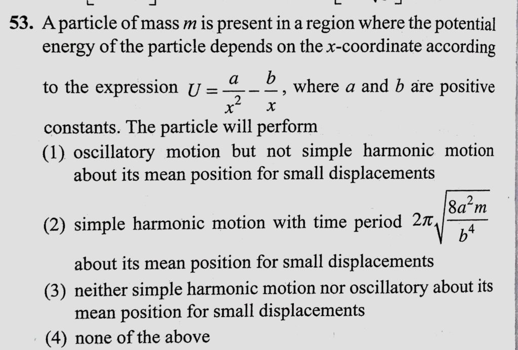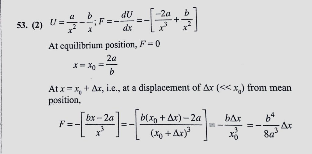 A particle of mass m is present in a region where the potential energy of the particle depends on the x-coordinate according to the expression U = a/x^2 – b/x, where a and b A particle of mass m is present in a region where the potential energy of the particle depends on the x-coordinate according to the expression U = a/x^2 - b/x where a and b October 31, 2020 Category: Uncategorised (JEE Advanced Physics by BM Sharma + GMP Solutions) , Facebook Messenger WhatsApp Share this:TwitterFacebook Related
