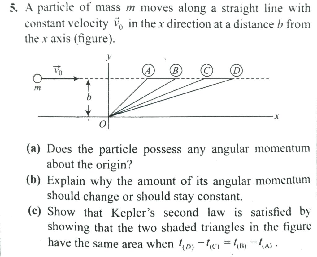A particle of mass m moves along a straight line with constant velocity v0 in the x direction at a distance b from the axis ( figure.) A particle of mass m moves along a straight line with constant velocity v0 in the x direction at a distance b from the axis ( figure.) October 2, 2020 Category: Uncategorised (JEE Advanced Physics by BM Sharma + GMP Solutions) , Facebook Messenger WhatsApp Share this:TwitterFacebook Related
