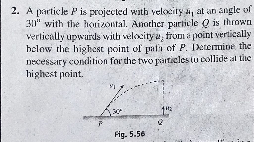 A particle P is projected with velocity u1 at an angle of 30 with the horizontal. Another particle Q is thrown vertically upwards with velocity u2 from a point vertically below the highest point of path of P. both the balls stay in our view for the same period. Pankaj and Sudhir are playing with two different balls of masses m and 2m respectively. If Pankaj throws his ball vertically up and Sudhir at an angle theta September 21, 2020 Category: Uncategorised (JEE Advanced Physics by BM Sharma + GMP Solutions) , Facebook Messenger WhatsApp Share this:TwitterFacebook Related