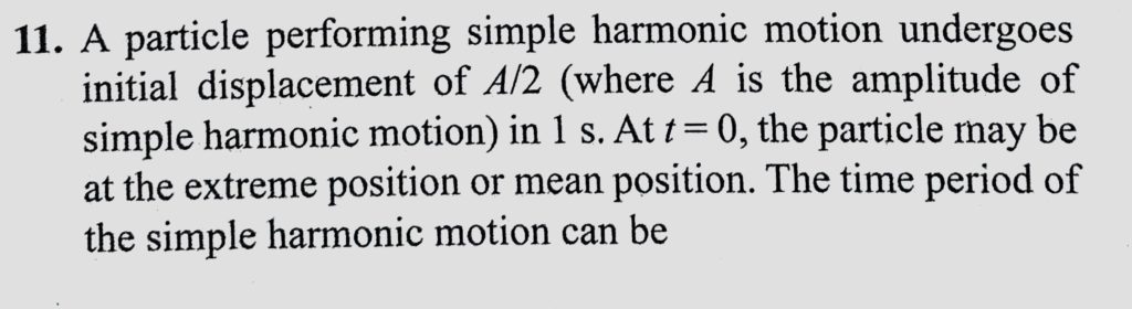A particle performing simple harmonic motion undergoes initial displacement of A/2 (where A is the amplitude of simple harmonic motion) in 1 s. At t = 0, the particle may be A particle performing simple harmonic motion undergoes initial displacement of A/2 (where A is the amplitude of simple harmonic motion) in 1 s. At t = 0 the particle may be October 31, 2020 Category: Uncategorised (JEE Advanced Physics by BM Sharma + GMP Solutions) , Facebook Messenger WhatsApp Share this:TwitterFacebook Related