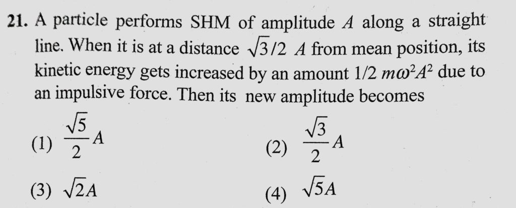 A particle performs SHM of amplitude A along a straight line. When it is at a distance root 3 / 2 A from mean position, its kinetic energy gets increased by an amount 1/2 m omega^2 A^2 due to A particle performs SHM of amplitude A along a straight line. When it is at a distance root 3 / 2 A from mean position its kinetic energy gets increased by an amount 1/2 m omega^2 A^2 due to October 30, 2020 Category: Uncategorised (JEE Advanced Physics by BM Sharma + GMP Solutions) , Facebook Messenger WhatsApp Share this:TwitterFacebook Related
