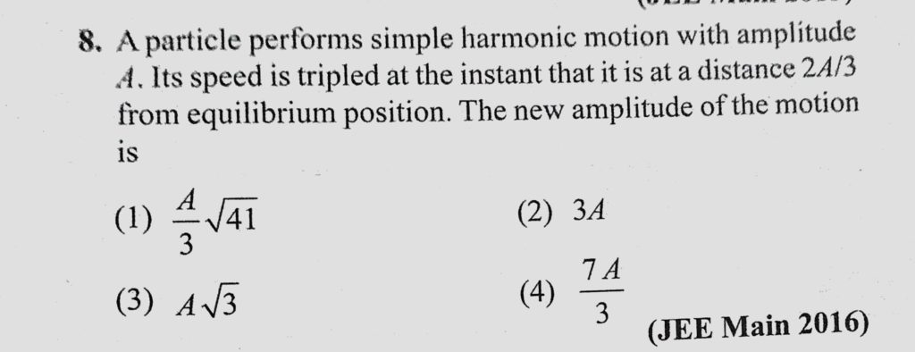 A particle performs simple harmonic motion with amplitude A. Its speed is tripled at the instant that it is at a distance 2A/3 from equilibrium position. The new amplitude of the A particle performs simple harmonic motion with amplitude A. Its speed is tripled at the instant that it is at a distance 2A/3 from equilibrium position. The new amplitude of the November 1, 2020 Category: Uncategorised (JEE Advanced Physics by BM Sharma + GMP Solutions) , Facebook Messenger WhatsApp Share this:TwitterFacebook Related