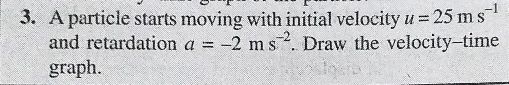 A particle starts moving with initial velocity u = 25 ms ^-1 and retardation a = -2 m s ^-2. Draw the velocity time graph. A particle starts moving with initial velocity u = 25 ms ^-1 and retardation a = -2 m s ^-2. Draw the velocity time graph. September 16, 2020 Category: Uncategorised (JEE Advanced Physics by BM Sharma + GMP Solutions) , Facebook Messenger WhatsApp Share this:TwitterFacebook Related