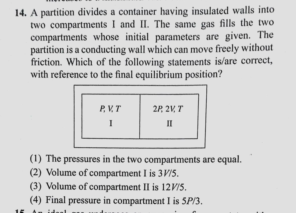 A partition divides a container having insulated walls into two compartments 1 and 2. The same gas fills the two compartments whose initial parameters are given. The partition A partition divides a container having insulated walls into two compartments 1 and 2. The same gas fills the two compartments whose initial parameters are given. The partition October 28, 2020 Category: Uncategorised (JEE Advanced Physics by BM Sharma + GMP Solutions) , Facebook Messenger WhatsApp Share this:TwitterFacebook Related