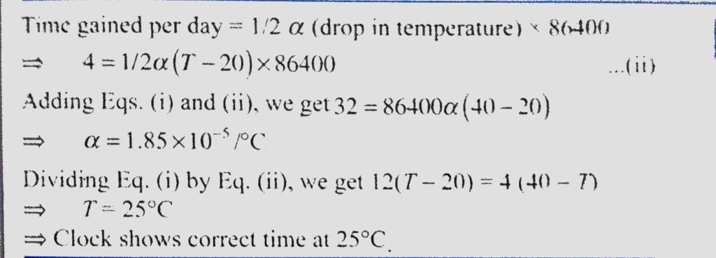 A pendulum clock loses 12s a day if the temperature is 40o C and gains 4s a day if the temperature is 20oC. The temperature at which the clock will show correct time, and the co-efficient of linear expansion ( A pendulum clock loses 12s a day if the temperature is 40o C and gains 4s a day if the temperature is 20oC. The temperature at which the clock will show correct time and the co-efficient of linear expansion ( September 1, 2020 Category: Uncategorised (JEE Advanced Physics by BM Sharma + GMP Solutions) , Facebook Messenger WhatsApp Share this:TwitterFacebook Related