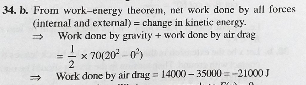 A person of mass 70 kg jumps from a stationary helicopter with the parachute open. As he falls through 50 m height, he gains a speed fo 20 m/s. The work done by the viscious air drag is A person of mass 70 kg jumps from a stationary helicopter with the parachute open. As he falls through 50 m height he gains a speed fo 20 m/s. The work done by the viscious air drag is October 3, 2020 Category: Uncategorised (JEE Advanced Physics by BM Sharma + GMP Solutions) , Facebook Messenger WhatsApp Share this:TwitterFacebook Related
