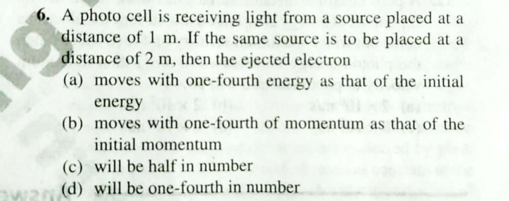 A photo cell is receiving light from a source placed at a distance 1 m. If the same source is to be placed at a distance of 2 m, then the ejected electron A photo cell is receiving light from a source placed at a distance 1 m. If the same source is to be placed at a distance of 2 m then the ejected electron September 13, 2020 Category: Uncategorised (JEE Advanced Physics by BM Sharma + GMP Solutions) , Facebook Messenger WhatsApp Share this:TwitterFacebook Related