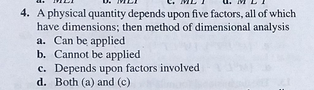 A physical quantity depends upon five factors, all of which have dimensions; then method of dimensional analysis a. can be applied b. cannot be applied A physical quantity depends upon five factors all of which have dimensions; then method of dimensional analysis a. can be applied b. cannot be applied September 14, 2020 Category: Uncategorised (JEE Advanced Physics by BM Sharma + GMP Solutions) , Facebook Messenger WhatsApp Share this:TwitterFacebook Related
