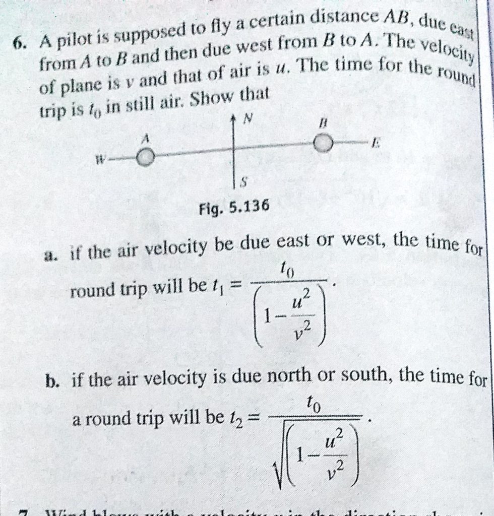 A pilot is supposed to fly a certain distance AB, due east from A to B and then due west from B to A. The velocity of plane is v and that of air is u. The time for the round trip is t0 in still air. Show that A pilot is supposed to fly a certain distance AB due east from A to B and then due west from B to A. The velocity of plane is v and that of air is u. The time for the round trip is t0 in still air. Show that September 21, 2020 Category: Uncategorised (JEE Advanced Physics by BM Sharma + GMP Solutions) , Facebook Messenger WhatsApp Share this:TwitterFacebook Related