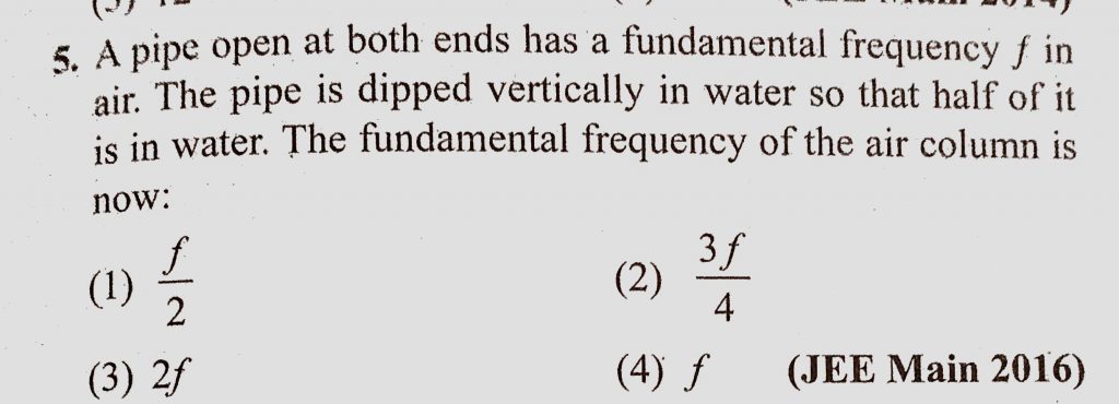 A pipe open at both ends has a fundamental frequency f in air. The pipe is dipped vertically in water so that half of it is in water. The fundamental frequency of the air column is now: A pipe open at both ends has a fundamental frequency f in air. The pipe is dipped vertically in water so that half of it is in water. The fundamental frequency of the air column is now: November 7, 2020 Category: Uncategorised (JEE Advanced Physics by BM Sharma + GMP Solutions) , Facebook Messenger WhatsApp Share this:TwitterFacebook Related