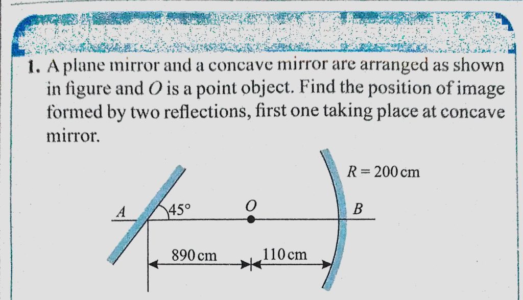 A plane mirror and a concave mirror are arranged as shown in figure and O is a point object. Find the position of image formed by two reflections, first one taking place at concave mirror. A plane mirror and a concave mirror are arranged as shown in figure and O is a point object. Find the position of image formed by two reflections first one taking place at concave mirror. October 5, 2020 Category: Uncategorised (JEE Advanced Physics by BM Sharma + GMP Solutions) , Facebook Messenger WhatsApp Share this:TwitterFacebook Related