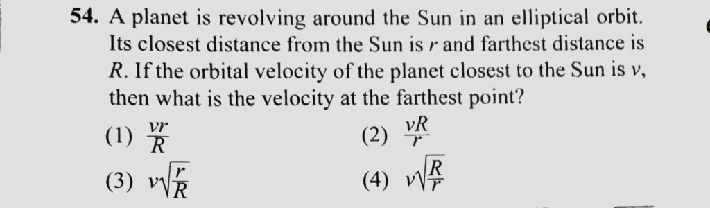 A planet is revolving around the Sun in an elliptical orbit. Its closest distance from the Sun is r and farthest distance is R. If the orbital velocity of the planet closest to the Sun is v, then what is the velocity at the farthest point? A planet is revolving around the Sun in an elliptical orbit. Its closest distance from the Sun is r and farthest distance is R. If the orbital velocity of the planet closest to the Sun is v then what is the velocity at the farthest point? October 5, 2020 Category: Uncategorised (JEE Advanced Physics by BM Sharma + GMP Solutions) , Facebook Messenger WhatsApp Share this:TwitterFacebook Related