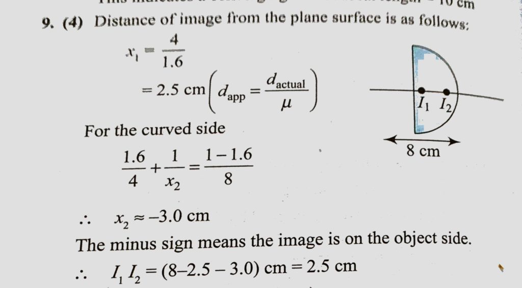 A plastic hemisphere has a radius of curvature of 8 cm and an index of refraction of 1.6. On the axis halfway between the plane surface and the spherical one (4 cm from each) A plastic hemisphere has a radius of curvature of 8 cm and an index of refraction of 1.6. On the axis halfway between the plane surface and the spherical one (4 cm from each) October 8, 2020 Category: Uncategorised (JEE Advanced Physics by BM Sharma + GMP Solutions) , Facebook Messenger WhatsApp Share this:TwitterFacebook Related