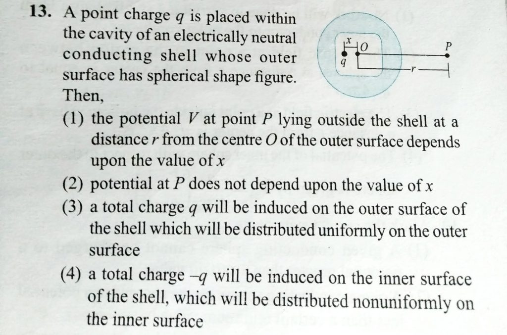 A point charge q is placed within the cavity of an electrically neutral conducting shell whose outer surface has spherical shape figure. Then, A point charge q is placed within the cavity of an electrically neutral conducting shell whose outer surface has spherical shape figure. Then November 6, 2020 Category: Uncategorised (JEE Advanced Physics by BM Sharma + GMP Solutions) , Facebook Messenger WhatsApp Share this:TwitterFacebook Related