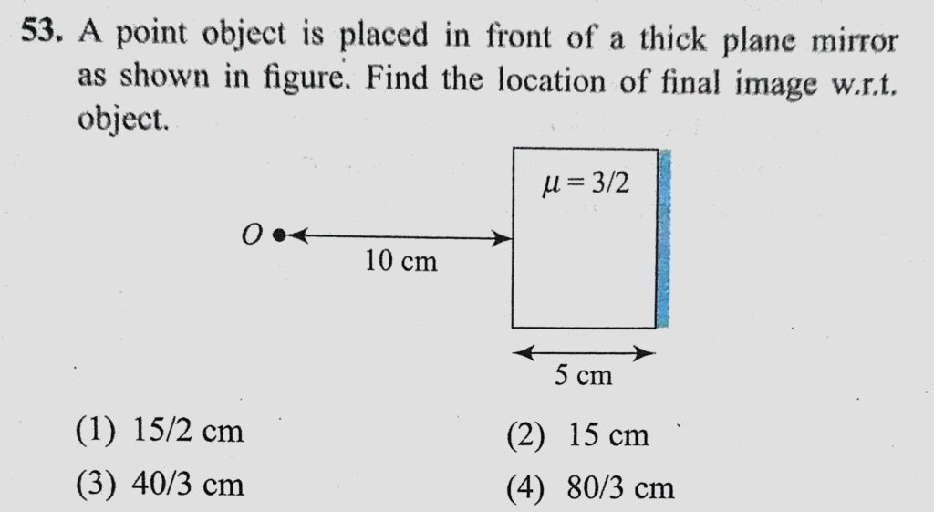A point object is placed in front of thick plane mirror as shown in figure. Find the location of final image w.r.t. object. A point object is placed in front of thick plane mirror as shown in figure. Find the location of final image w.r.t. object. October 6, 2020 Category: Uncategorised (JEE Advanced Physics by BM Sharma + GMP Solutions) , Facebook Messenger WhatsApp Share this:TwitterFacebook Related