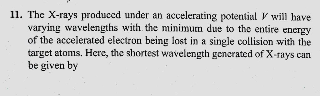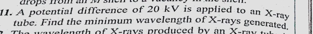 A potential difference of 20 kV is applied to an X-ray tube. Find the minimum wavelength of X-rays generated. A potential difference of 20 kV is applied to an X-ray tube. Find the minimum wavelength of X-rays generated. October 15, 2020 Category: Uncategorised (JEE Advanced Physics by BM Sharma + GMP Solutions) , Facebook Messenger WhatsApp Share this:TwitterFacebook Related