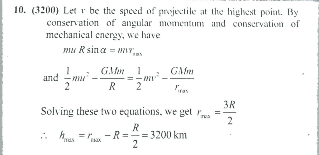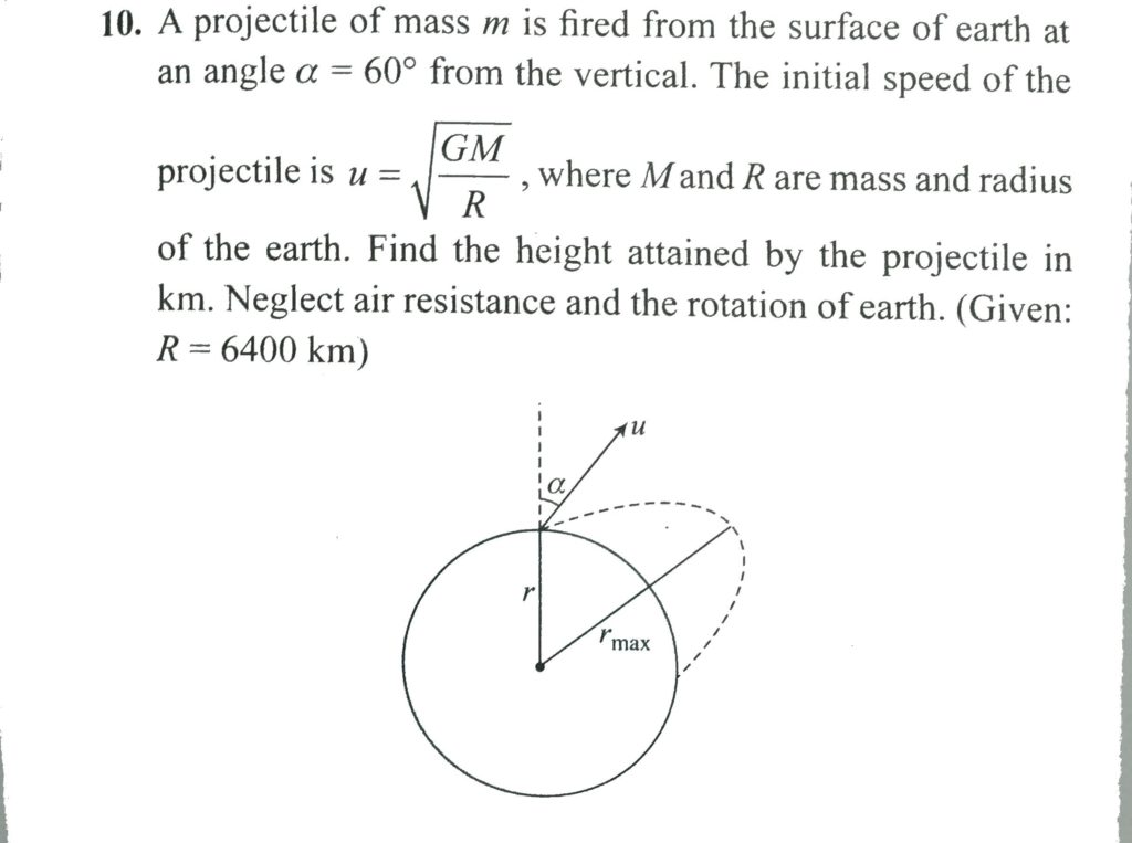 A projectile of mass m is fired from the surface of the earth at an angle α=60∘ from the vertical. The initial speed υ0 is equal to root G Me / Re . How high does the projectile rise ? Neglect air resistance and the earth’s rotation. A particle of mass m is subjected to an attractive central force of magnitude k/r 2 at a distance a from the centre of force if the distance of other extreme position is b. Find a/b its speed is (k/2ma) k being a constant. If at the instant when the particle is at an extreme position in its closed orbit October 6, 2020 Category: Uncategorised (JEE Advanced Physics by BM Sharma + GMP Solutions) , Facebook Messenger WhatsApp Share this:TwitterFacebook Related
