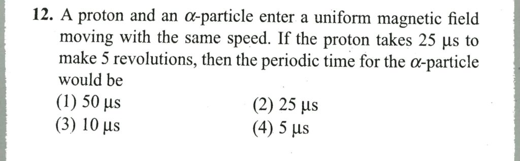 A proton and an alpha particle enter a uniform magnetic field moving with the same speed. If the proton takes 25 muS to make 5 revolutions, then the periodic time for the alpha particle would be A proton and an alpha particle enter a uniform magnetic field moving with the same speed. If the proton takes 25 muS to make 5 revolutions then the periodic time for the alpha particle would be October 13, 2020 Category: Uncategorised (JEE Advanced Physics by BM Sharma + GMP Solutions) , Facebook Messenger WhatsApp Share this:TwitterFacebook Related