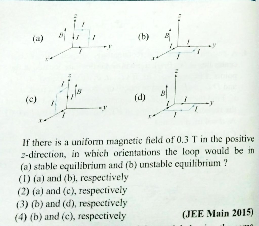 A rectangular loop of sides 10 cm and 5 cm carrying a current I of 12 A is placed in different orientations as shown in figure below: A rectangular loop of sides 10 cm and 5 cm carrying a current I of 12 A is placed in different orientations as shown in figure below: October 16, 2020 Category: Uncategorised (JEE Advanced Physics by BM Sharma + GMP Solutions) , Facebook Messenger WhatsApp Share this:TwitterFacebook Related