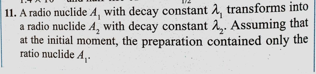 A radio nuclide A1 with decay constant lemda 1 transforms into a radio nuclide A2 with decay constant lemda 2. Assuming that at the initial moment, the preparation contained only the ratio A radio nuclide A1 with decay constant lemda 1 transforms into a radio nuclide A2 with decay constant lemda 2. Assuming that at the initial moment the preparation contained only the ratio October 17, 2020 Category: Uncategorised (JEE Advanced Physics by BM Sharma + GMP Solutions) , Facebook Messenger WhatsApp Share this:TwitterFacebook Related